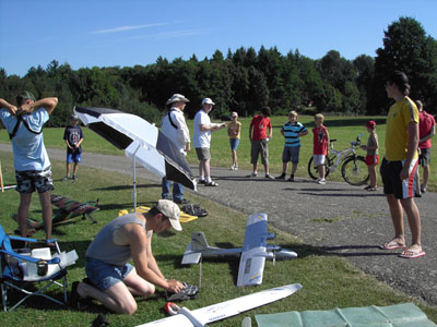 Nach einer Einweisung in die Funktion eines Modellflugzeuges und seiner Steuerung, wurden die Kinder in zwei Gruppen aufgeteilt. Die einen begannen unter Anleitung von drei Vereinspiloten mit dem Fliegen, die anderen durften Balsagleiter bauen.