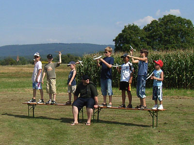 Immer wieder wurde gewechselt, so dass alle Kinder an verschiedenen Modellen fliegen durften und gegen 12:00 Uhr auch alle einen Balsaflieger gebaut hatten.