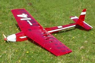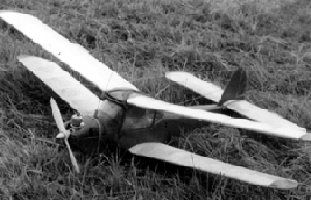 in ca. 13 sec eine Strecke von 60 m. Die Spannweite betrug 480 mm, Flügeltiefe 110 mm, Länge 500 mm, Gesamtgewicht 16 g. Die